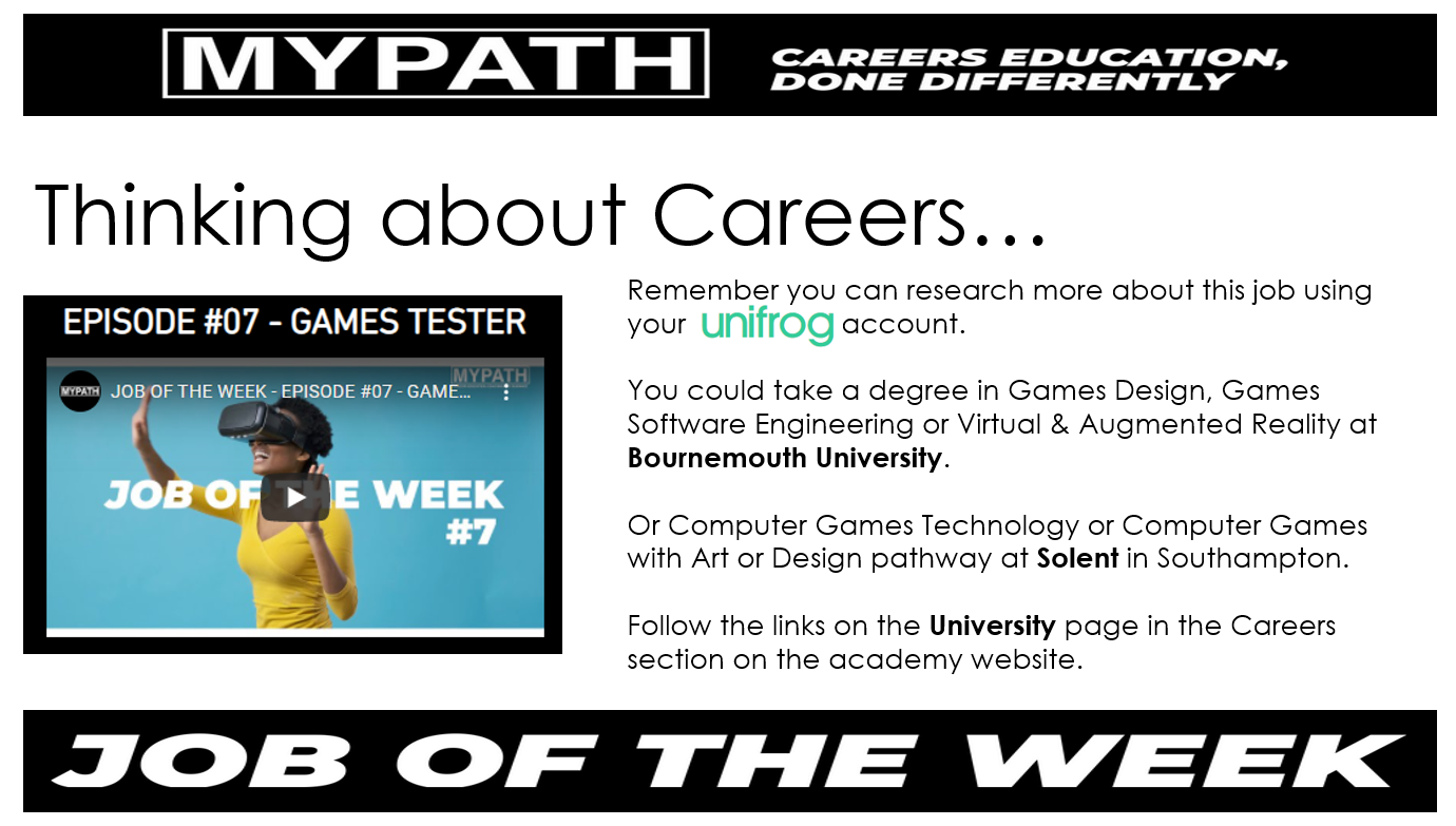 These provide great insights into a wide range of different careers ideas, providing information on education and training pathways, potential earnings and future career progression - all in 2 minutes!